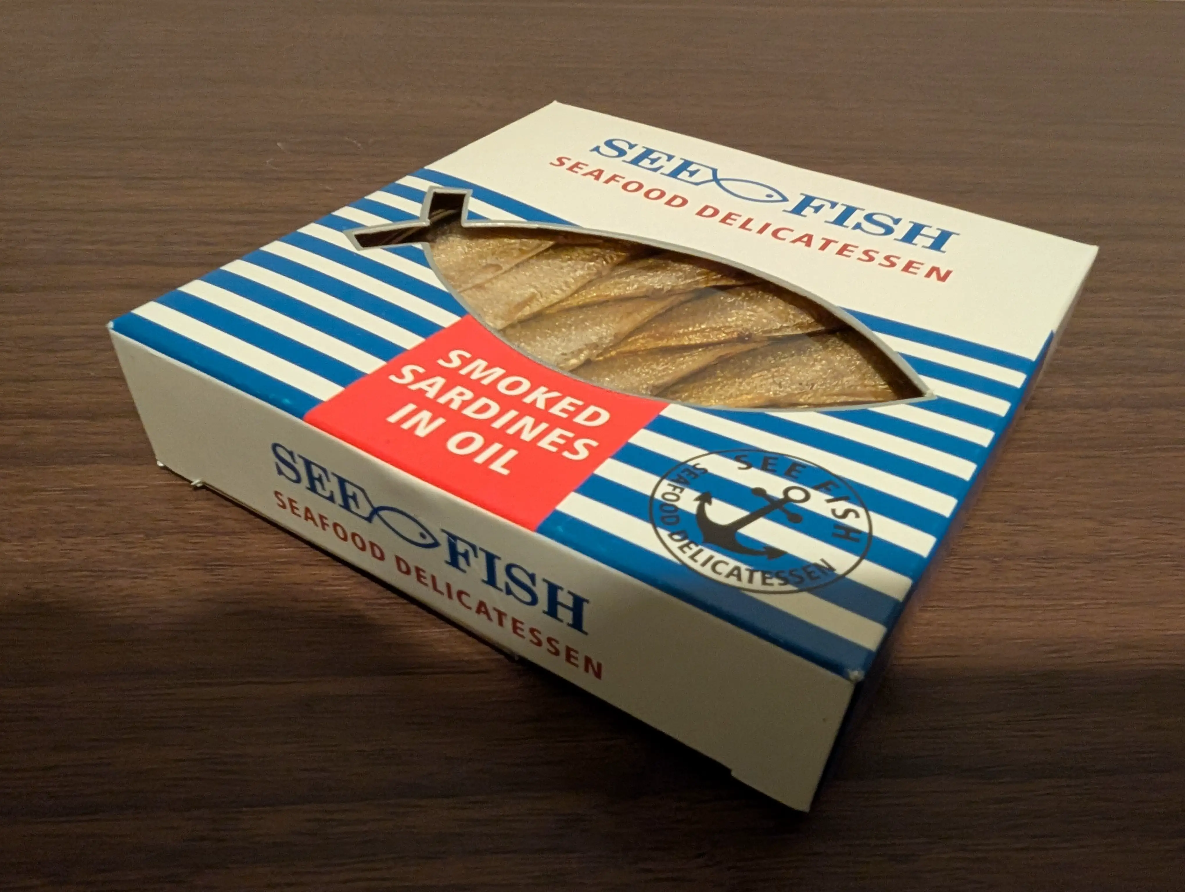 2025-09-09に食べたnakato(ラトビア製造)製の「SEE_FISH_SEAFOOD_DELICATESSEN_SMOKED_SARDINES_IN_OIL」です。 魚は鰯で、オイルな風味と白、青の缶の色が特徴です。美味いで、缶は開けやすいです。 オメガ3脂肪酸の含有量の目安としては、DHAが記載無しで、EPAが記載無しでした。 感想:こういう見た目の缶詰って美味くない確率が高いから恐る恐る食べたのだが、想像していたよりも遥かに美味かった。蓋が缶じゃないからこれは缶詰と呼んで差し支えないのかはよく分からんが。