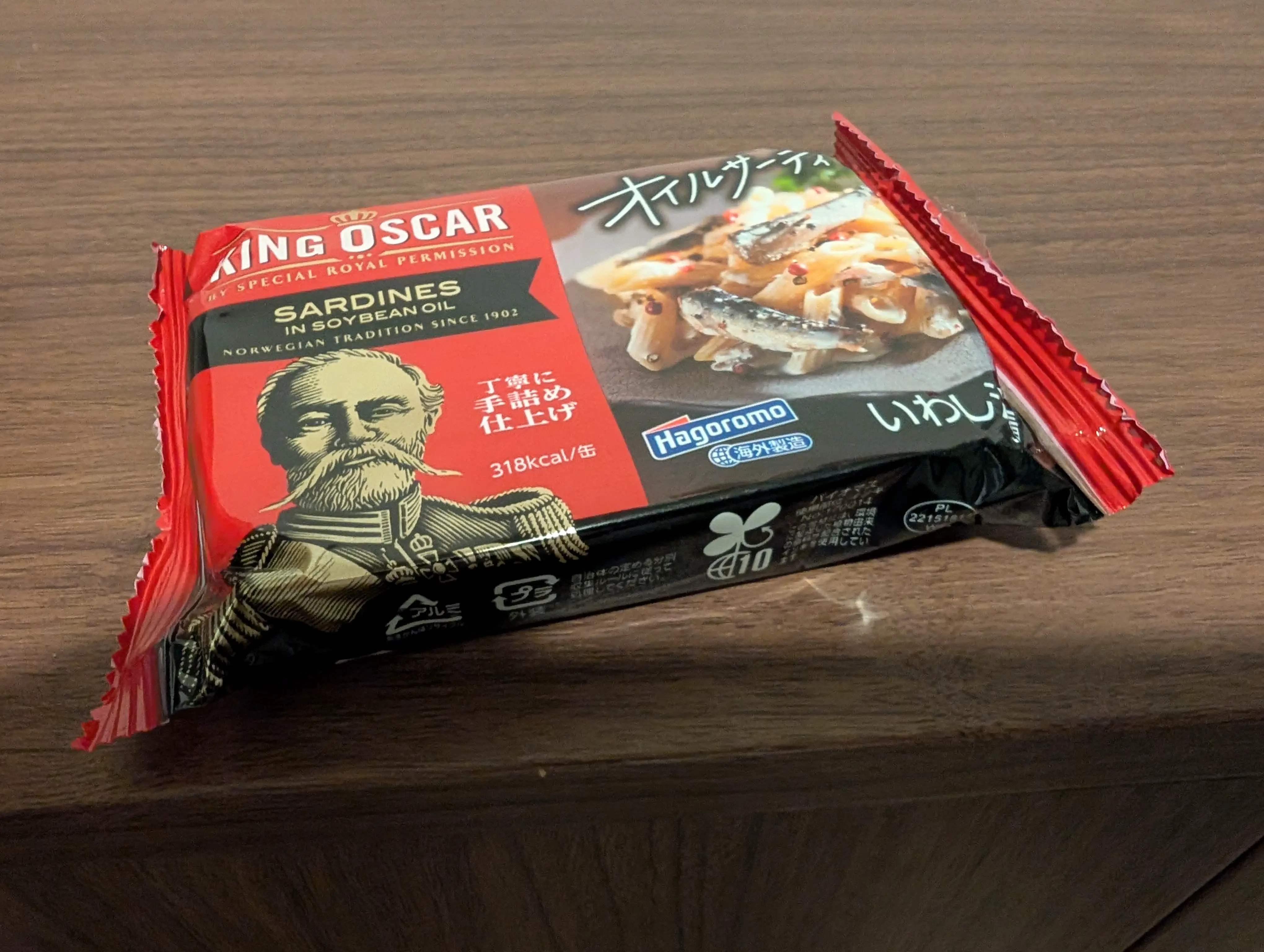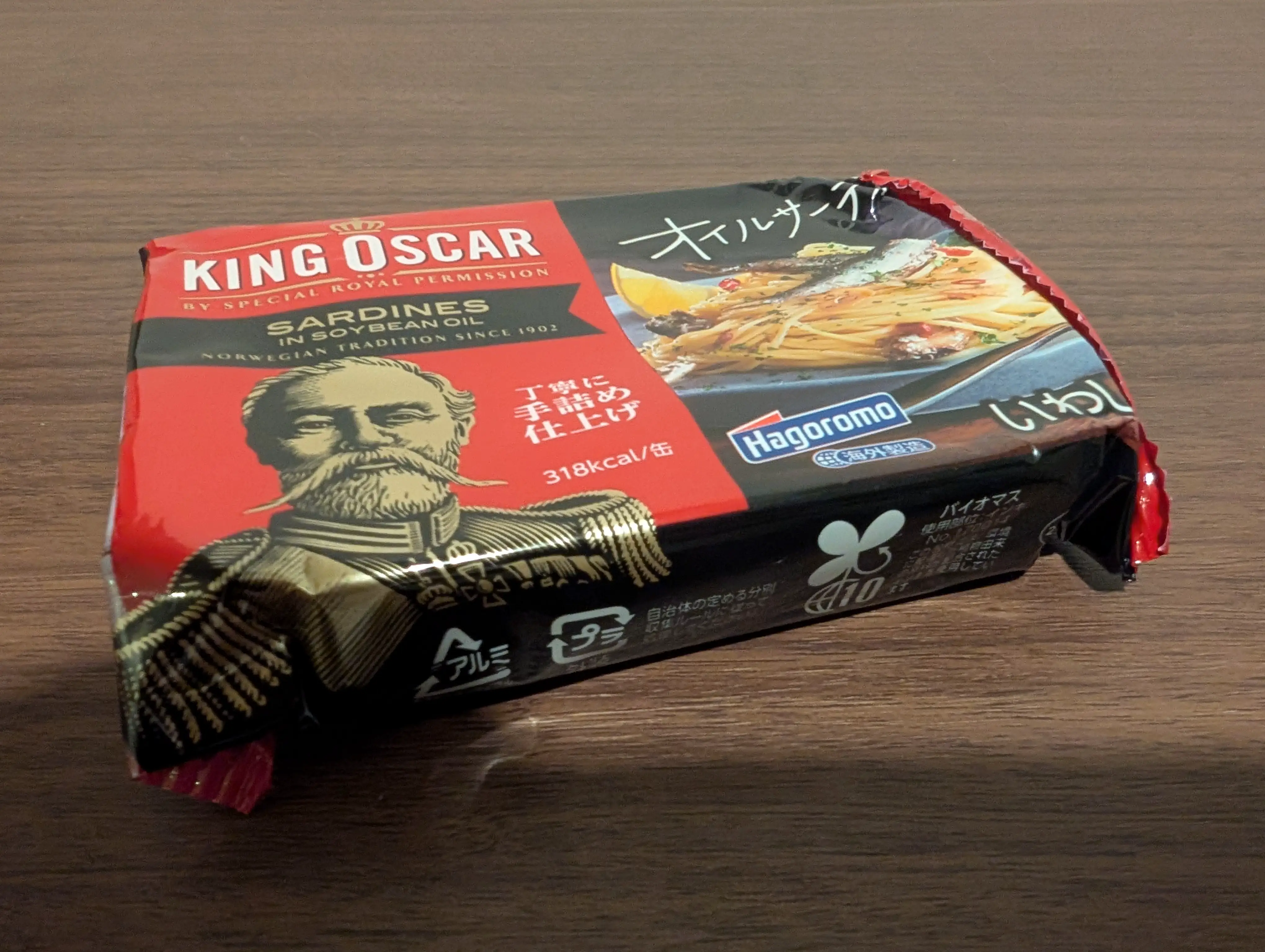 2025-12-11に食べたはごろもフーズ、KING-OSCAR製の「はごろも&KING-OSCAR_オイルサーディン_丁寧に手詰め仕上げ(調理例:ペンネペペロンチーノ)」です。 魚は鰯で、オイルな風味と赤の缶の色が特徴です。美味いで、缶は開けやすいです。 オメガ3脂肪酸の含有量の目安としては、DHAが記載無しで、EPAが記載無しでした。 感想:パッケージがいつも違うから買って食っているのだが、美味いので全く問題ないな。