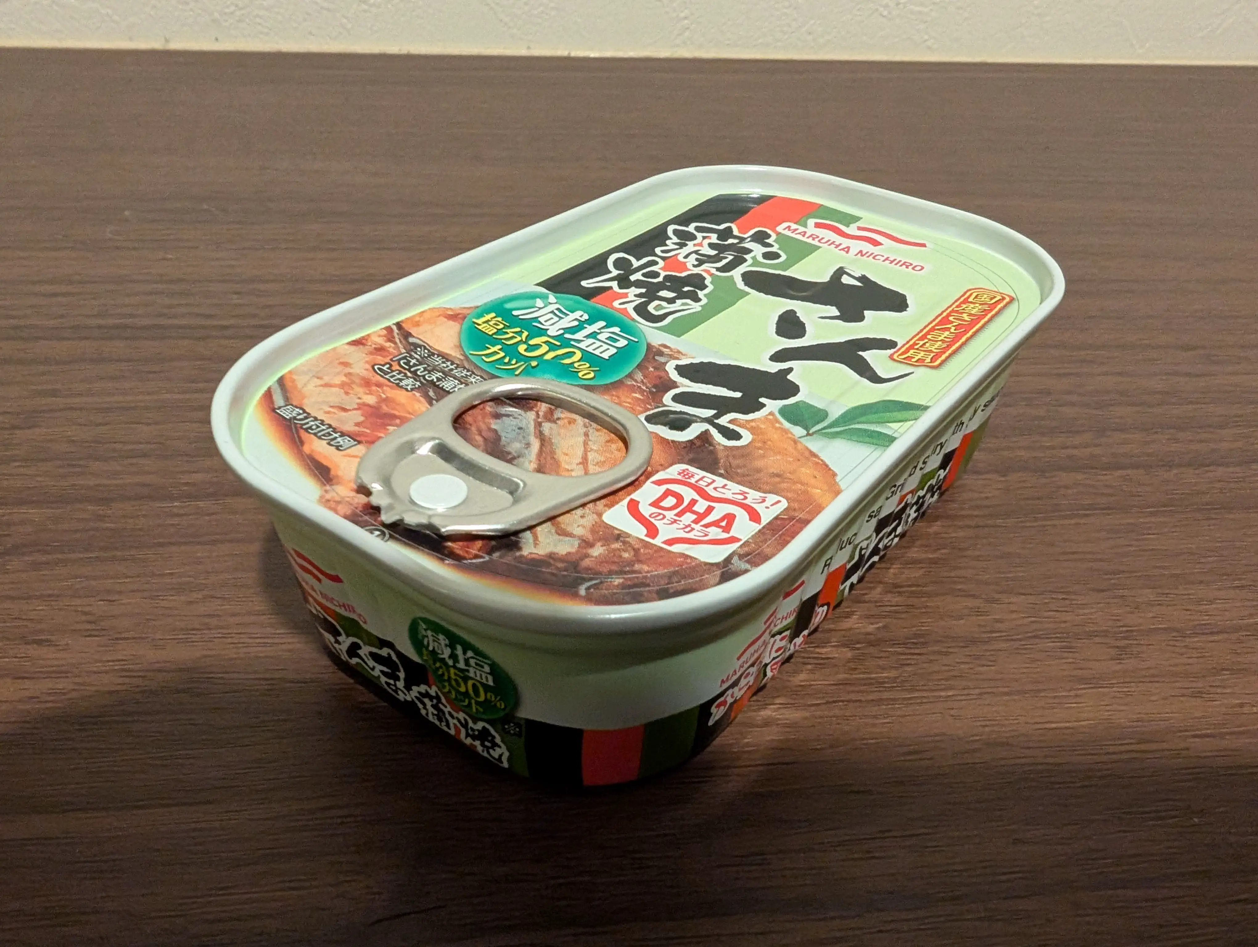 2025-11-27に食べたマルハニチロ製の「マルハニチロ_さんま蒲焼_減塩_塩分50%カット」です。 魚は秋刀魚で、蒲焼な風味と黄緑、歌舞伎定式幕の缶の色が特徴です。少し美味いで、缶は開けやすいです。 オメガ3脂肪酸の含有量の目安としては、DHAが1900mgで、EPAが490mgでした。 感想:確かに塩分が少ない気がする。なので味が薄めです。